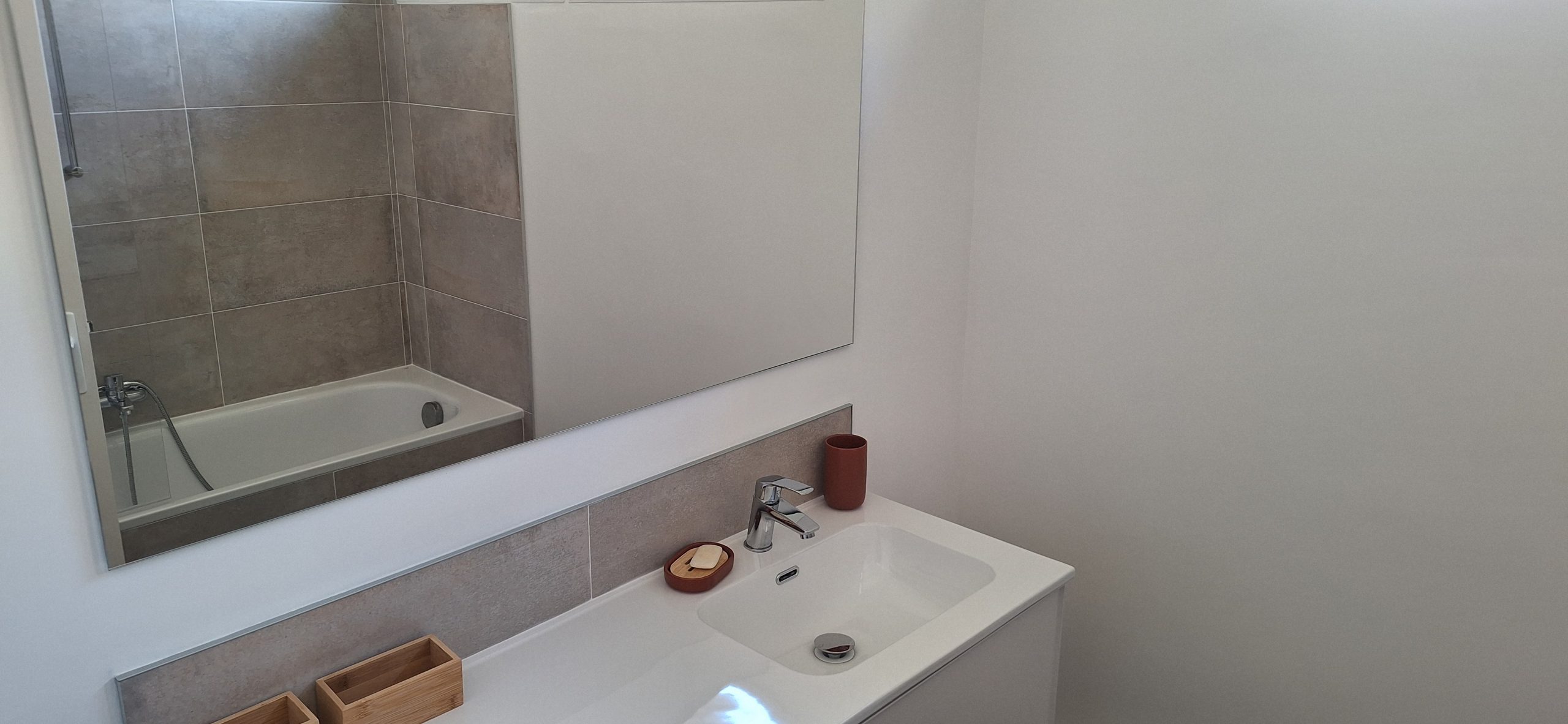SALLE DE BAINS : Baignoire + 1 Lavabo + 1 Sèche serviettes + Aération